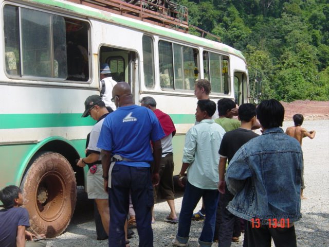 The bus had a punctured tyre in the morning on the road to Luang Namttha.