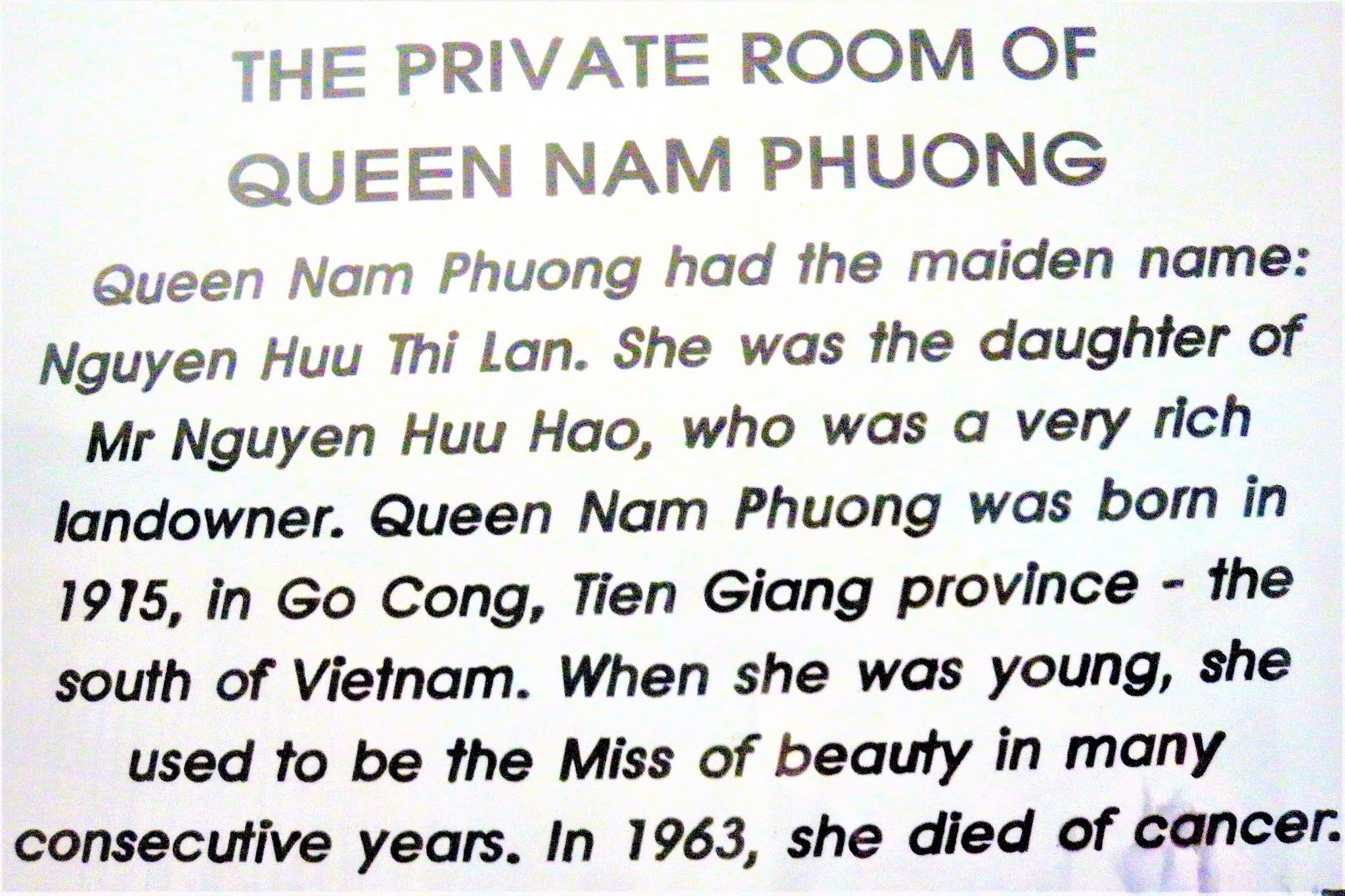 We were briefed by an officer at the Reunification Palace. Nguyen Van Thieu was the last president of South Vietnam.
