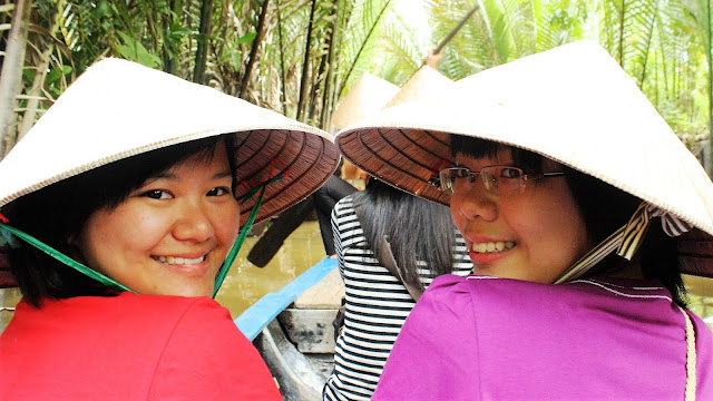 Jamie Loo and Jocelyn Loo enjoying the row boat in My Tho.