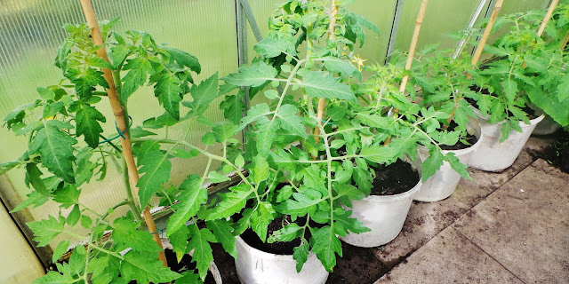 Tomatoes plant in Alistair McCulloch garden at Shambley Residence, Millfield Avenue, Stranraer, Scotland