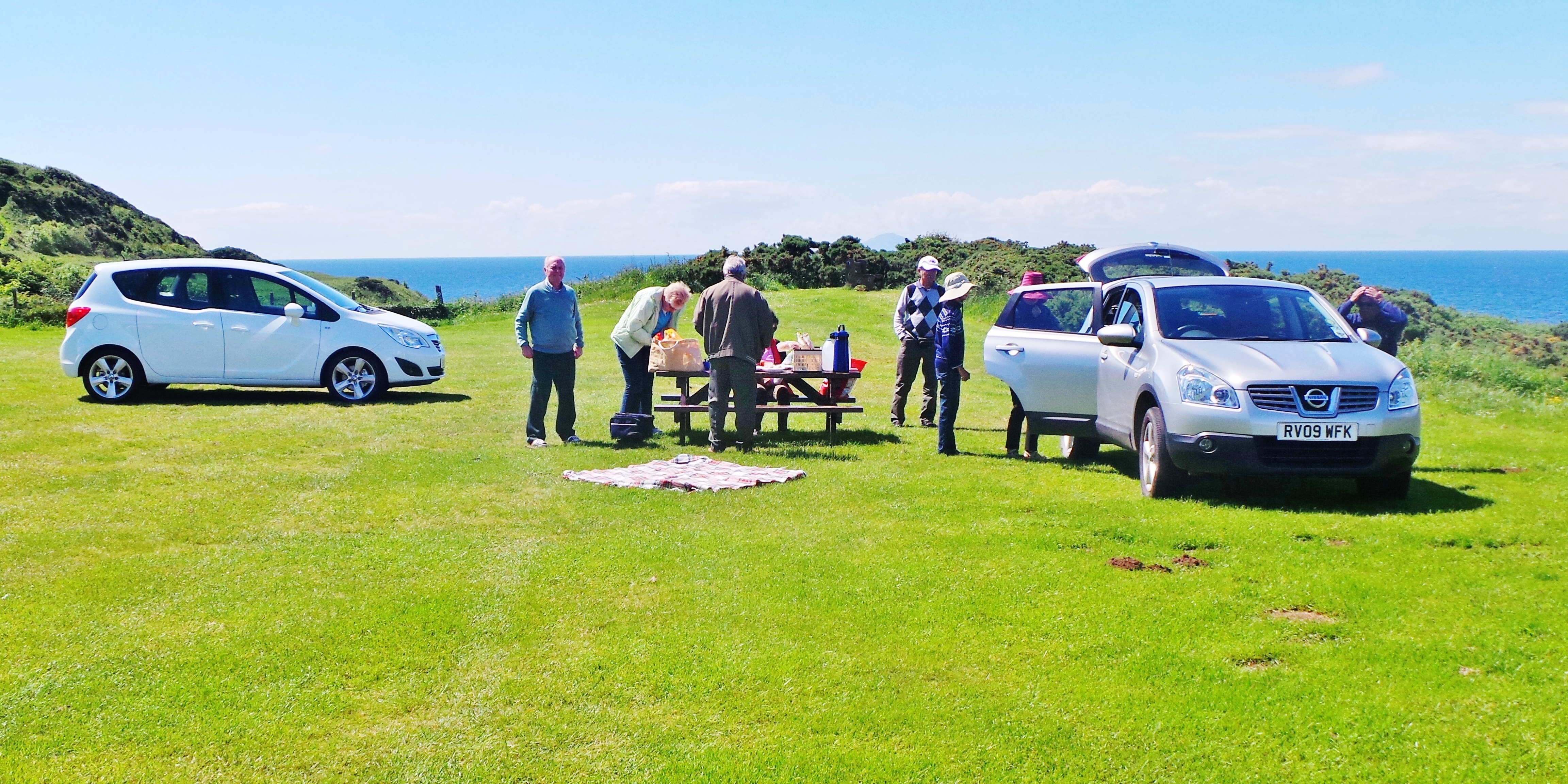 Our heartiest congratulations to Janet and James Drysdale for getting a new car a few days ago and a thousand thanks to both of them for driving the ladies on the western scenic coastal road towards Ayr. We had morning tea hosted by Janet and James Drysdale at Maly Café at Girvan and later had picnic lunch at Kennedy Park, beside Dunure Castle. Total return road journey travelled was about 185 km.