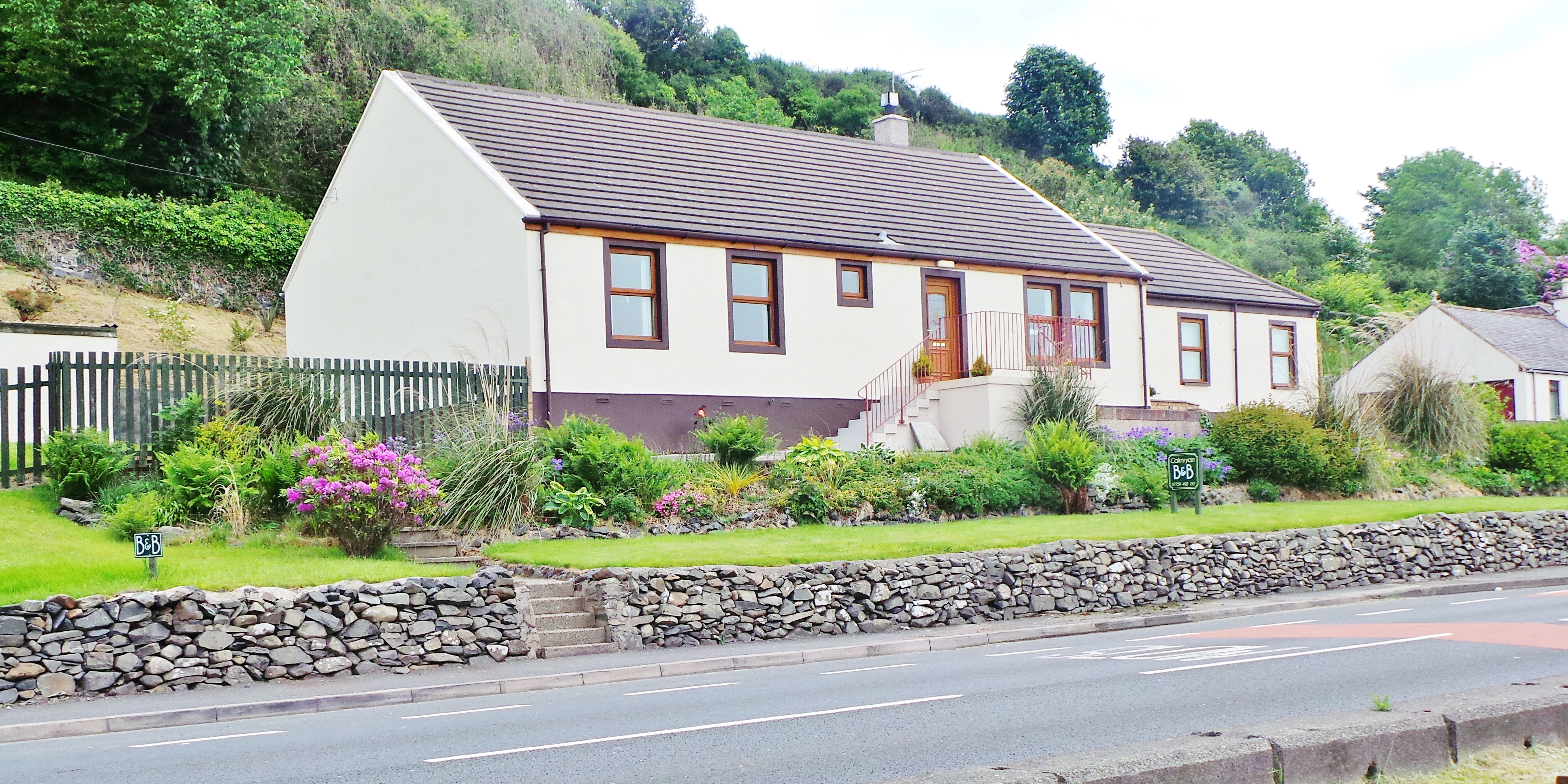 A shop, hotel and B & B establishments are available within Cairnryan village. Passing the P & O Ferry Terminal on the main road the Loch Ryan Coastal route returns to the shoreline where it continues along the route of the old Cairnryan Military Railway for approximately two miles crossing Several Burn and Beoch Burn on stepping stones.
