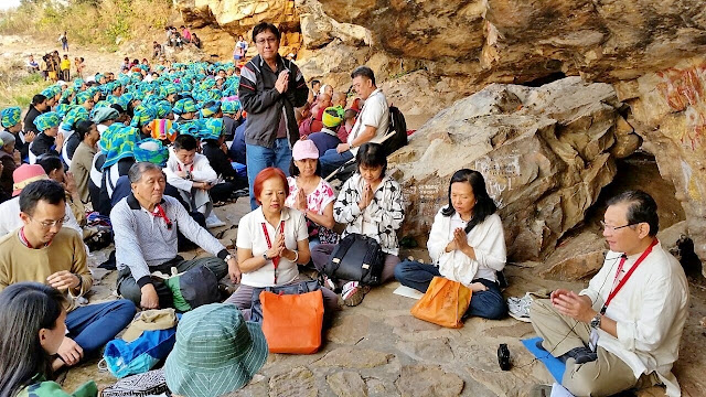 Chanting and meditating led by our group leader Datuk Seri Dr. Victor Wee at Sattapanni Caves in Rajgir.