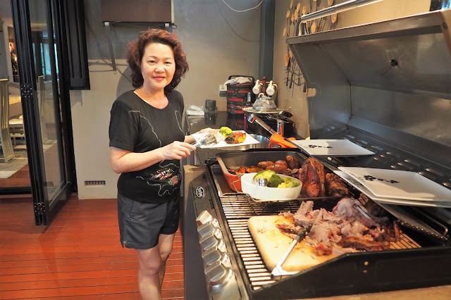 After an early lunch, we went to 'BCF' (boating-camping-fishing) to buy 4 pieces of Wanderer Compact Steel Camper Stretcher Single at AUD37 each for camping. In the afternoon Dave started to barbecue two pork knuckles in his red Weber charcoal grill for dinner. Our two VIP guests for dinner were Nigel and wife Janet Joshua.
